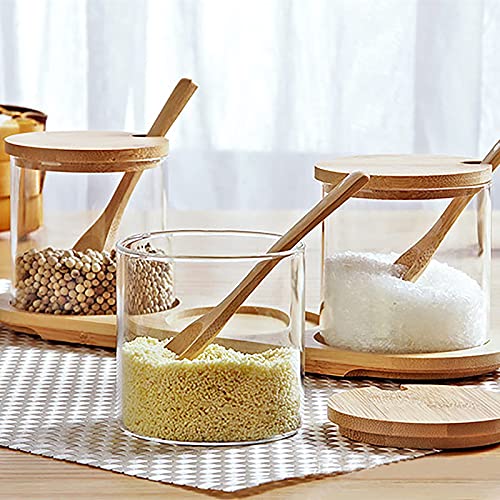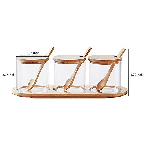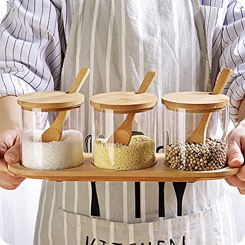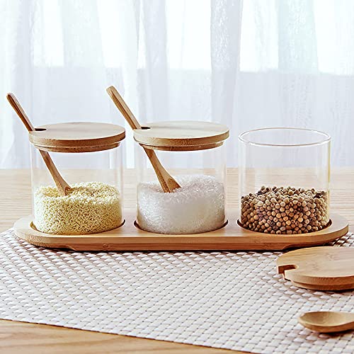 Specification: Creature Jar Sets Kruidendoos met Bamboe Deksel Glas Kruidendoos,Houten Lepel en Bamboe Lade,Set van 3 Kruiden potten…
