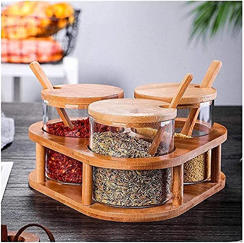 Specification: Spice Box Glas Smaak Set Kruiden Voedsel Opbergdoos Zout Peper Pot Container en Cover Lepel Keukengerei Bamboe Dienst…