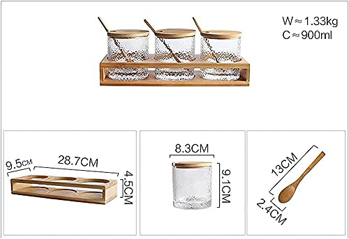SPICE JAR CONTAINER OMVAT:3 x Spice Jar,3 x bamboe-deksels,3 x hoge kwaliteit bamboelepel die niet gemakkelijk is gebroken of gecorrodeerd,1 x anti-slip bamboe basis:houd de keuken in opgeruimd.