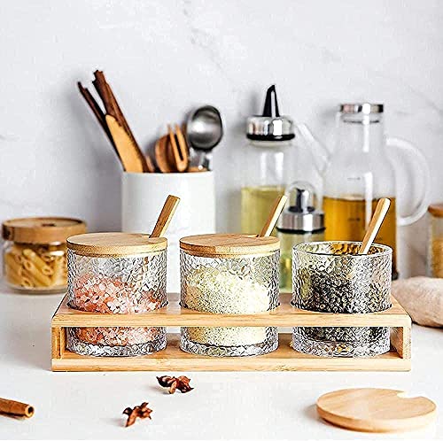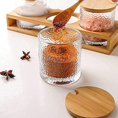 Bamboe Spice Rack Glas Spice Box Combinatie Set Huishoudelijke Keuken Supplies Sugar Salt Bowl Seizoensfles Opbergdoos