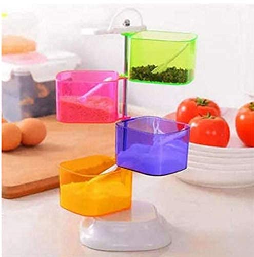 Specification: Spice Jars Four-Piece Kitchen Kruiden Doos 360-Graden Kleur Kruiden Fles Roterende Kruiden Jar Combinatie Keuken Spice…