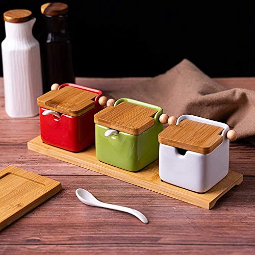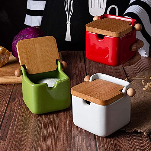 Specification: Spice opslag keramische set thuis kruiden box zout doos suikervak kleur vierkante kruiden doos Kruiden potten WSYGHP